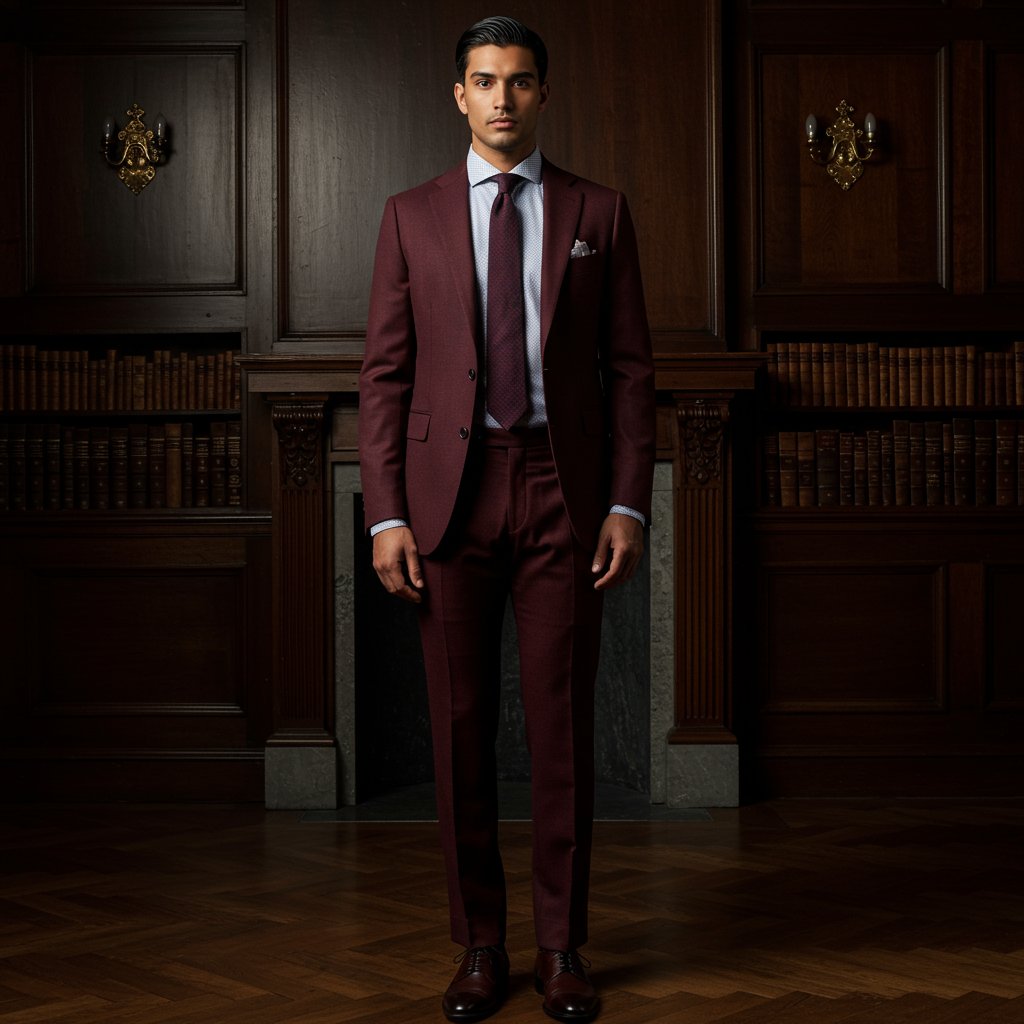 Tailored Wool Trousers - Burgundy